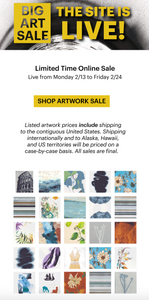 We targeted local designers and previous customers with direct mail, email, and organic social media messaging. To drive onsite traction, our campaign directed locals to our showroom on the opening weekend, then shifted to a limited 2-week online sale. We used imagery for the limited originals available in the sale to promote urgency, this contributed to more than doubling ROI from previous inventory sales.